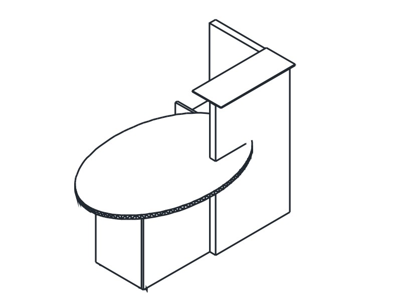 OVO jest wielofunkcyjną ladą dedykowaną małym pomieszczeniom lub biurom obsługi klienta. Obniżony blat ułatwia komunikację z klientem w pozycji siedzącej, a wspólna część blatu roboczego ułatwia wypełnianie dokumentów oraz sprzyja bezproblemowej komunikacji. Podwyższona część lady kryje stanowisko komputerowe oraz pionową półkę na segregatory i dokumenty.