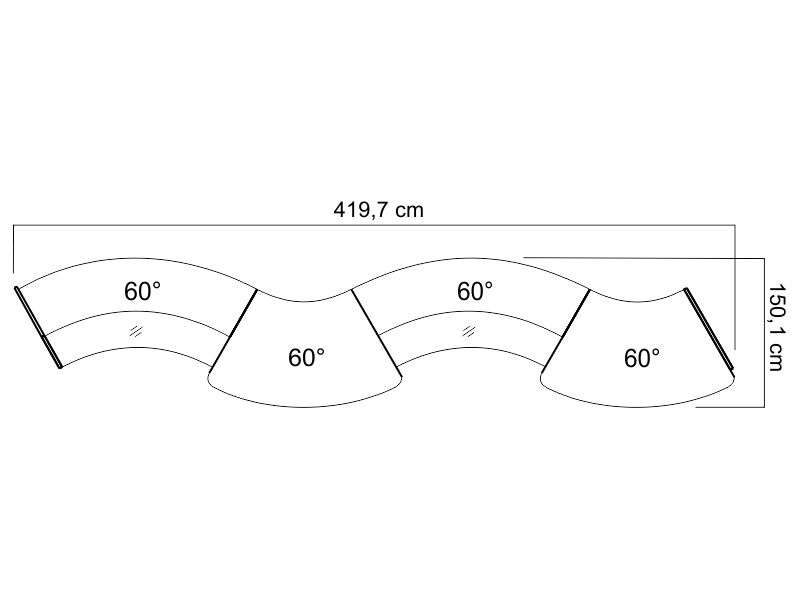 Blat z hartowanego białego szkła doskonale współgra z połyskującym frontem lady, a poziomo biegnące aluminiowe listwy delikatnie podkreślają kształt oraz nowoczesny charakter bryły.